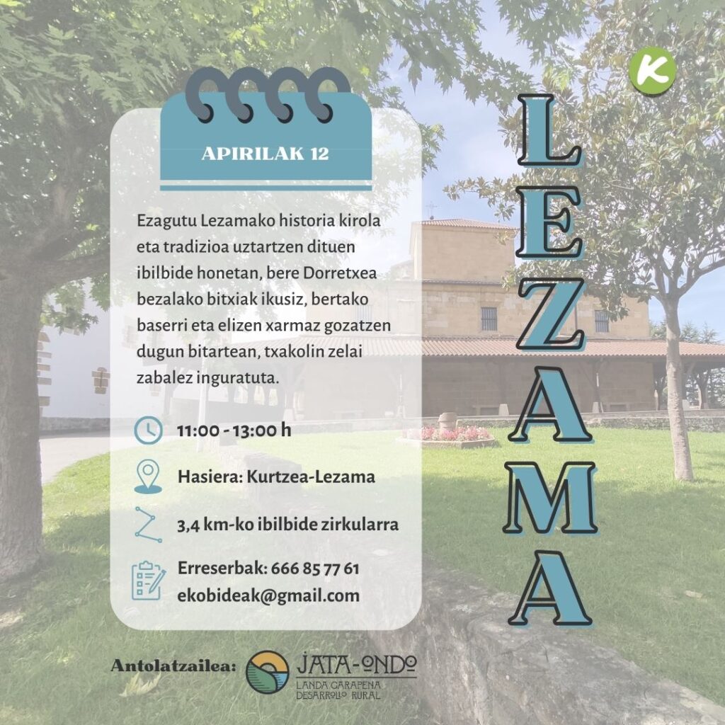 Ezagutu Lezamako historia kirola eta tradizioa uztartzen dituen 3,4 km-ko ibilbide zirkularraren bidez. Dorretxea bezalako bitxiak ikusiko dituzu, txakolin-zelai zabalez inguratutako baserriz eta elizen xarmaz gozatzen duzun bitartean.