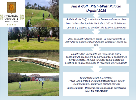 - Golf-jarduerak paisaian ezin hobeto integratutako zelaietan (Urgoiti Jauregia – Mungia).