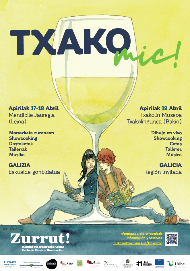 Binetak zapore ukitu batekin bueltan dira! Aste Santu honetan, komikiaren eta txakolinaren arteak bat egingo du Txakomic! ekitaldiaren edizio berri batean.🎨🥂