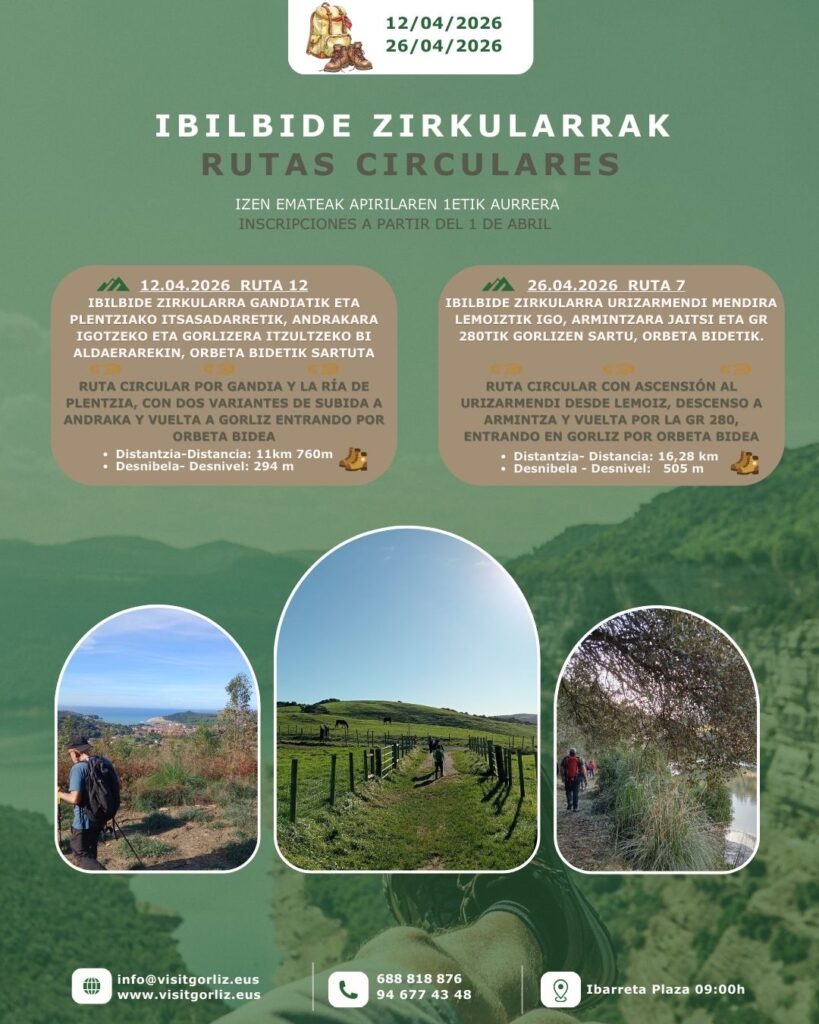 Izen-emateak apirilaren 1etik aurrera Gorlizko Turismo Bulegoan, presentzialki edo telefonoz: 94 677 43 48 / 688 818 876!